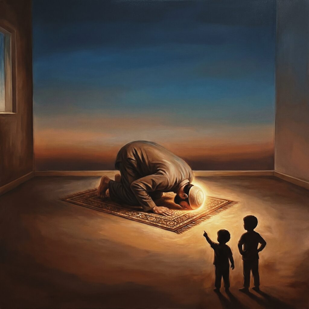 في وقتٍ لا هو صباح تمامًا ولا مساء خالص، فرش الأب سجادته، واستدار نحو القبلة، كما استدار من قبل آلاف المرات، دون أن يخطر بباله أن هذه المرة ستُكتب.
